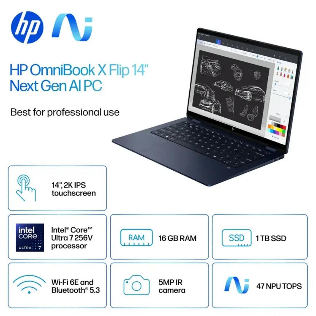 - 【14-Inch 2K Touchscreen With IPS】Intuitive technology lets you control your PC right from the screen. The HP OmniBook X Flip 14 Next Gen AI PCs explore your creativity with sketching and editing using the existing Copilot+ AI capabilities. Transform your content with 1920 x 1200 resolution and 178-degree wide-viewing angles. Multi-touch enabled, IPS (in-plane switching), edge-to-edge glass, micro-edge, Corning Gorilla Glass 3.