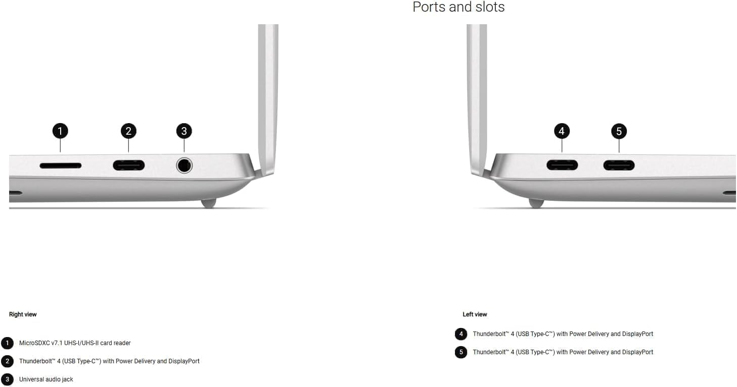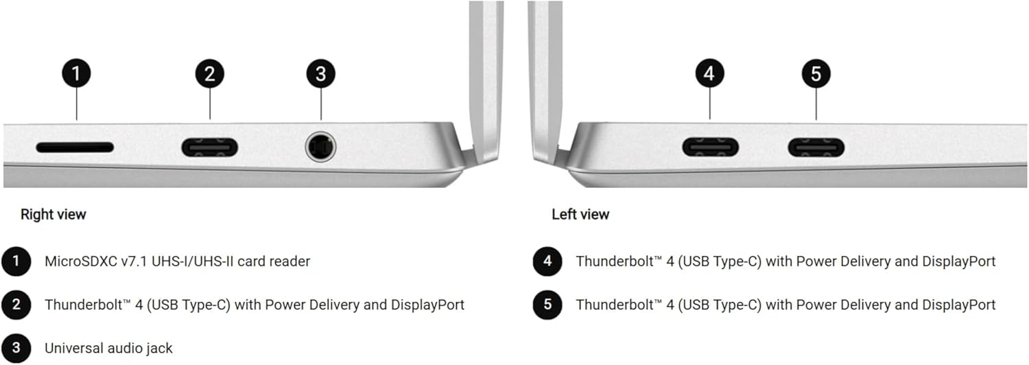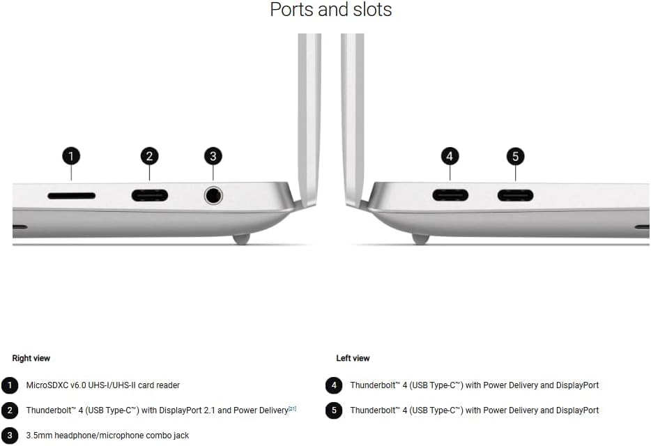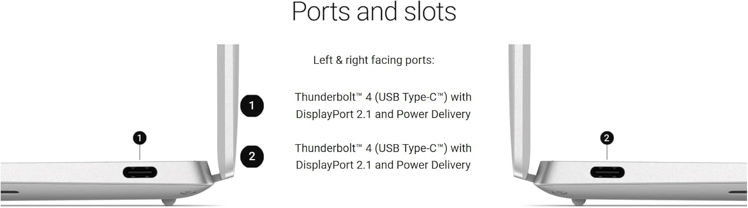 • Ports:2 x Thunderbolt 4 (USB Type-C) with DisplayPort 2.1 and Power Delivery| Touchpad: Multi-touch gesture-enabled precision touchpad with integrated scrolling